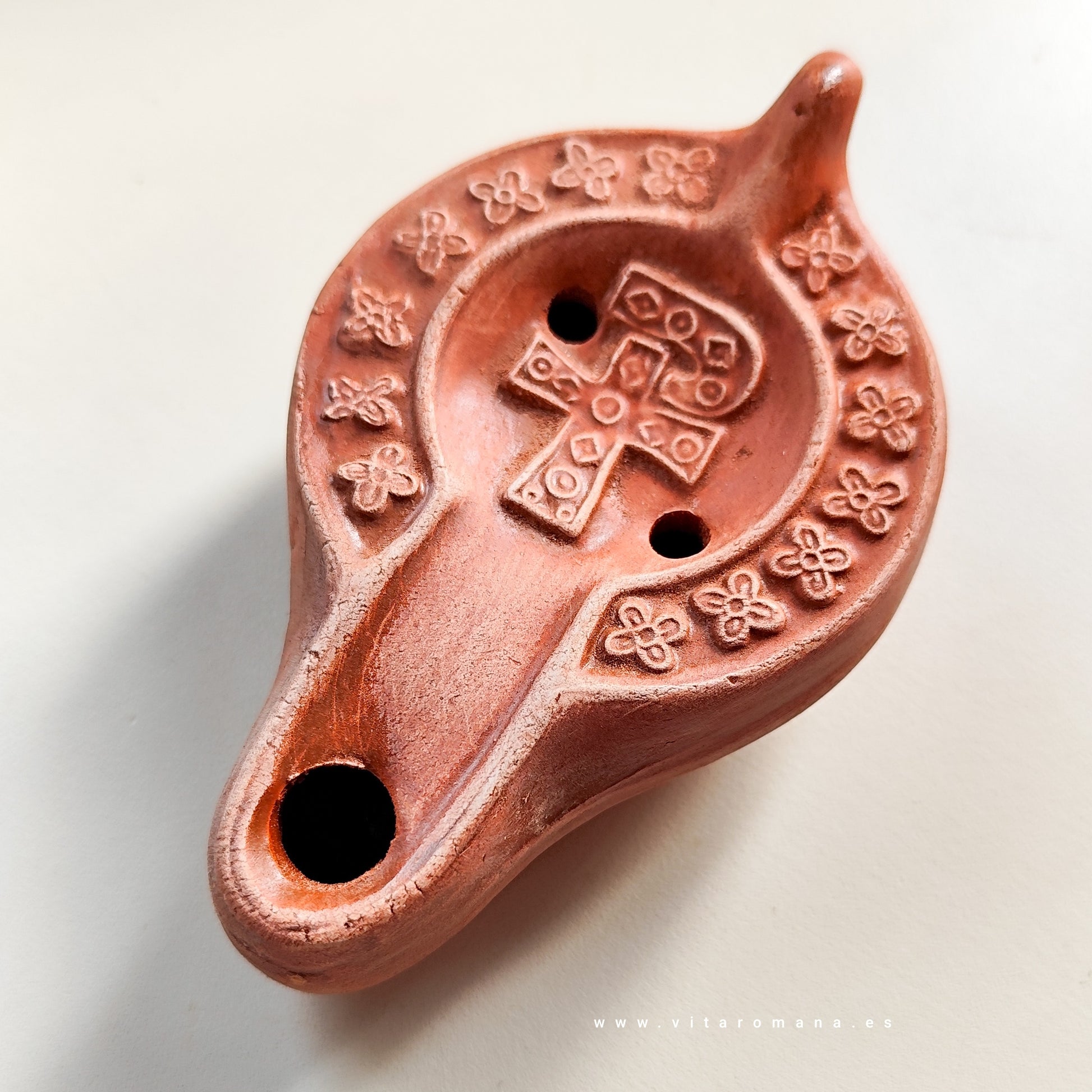 Replik einer afrikanischen Sigillata-Lampe aus dem 4. Jahrhundert, gefunden im römischen Barcelona. Das Original befindet sich im MUHBA (Museum für Archäologie und Naturgeschichte). Weitere Stücke befinden sich auch im Nationalen Archäologischen Museum und in vielen anderen Teilen des Reiches.